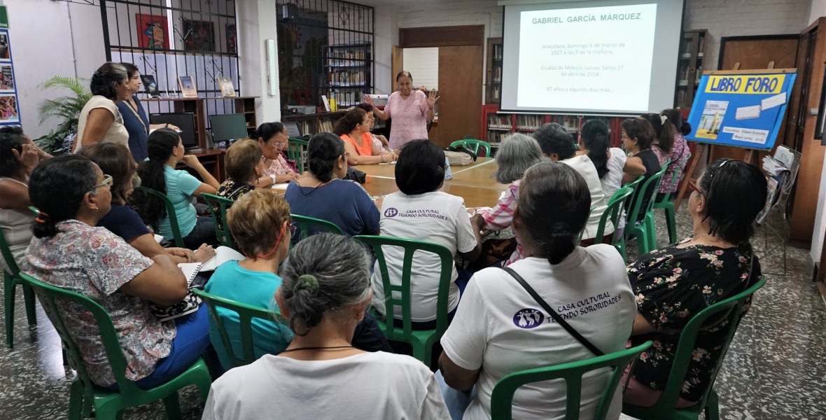 A través de sus dos sedes en la comuna 18, la Casa Cultural Tejiendo Sororidades ofrece en forma permanente talleres artesanales, servicio de biblioteca, herramientas virtuales, ludoteca, grupos de formación en lectura y espiritualidad.