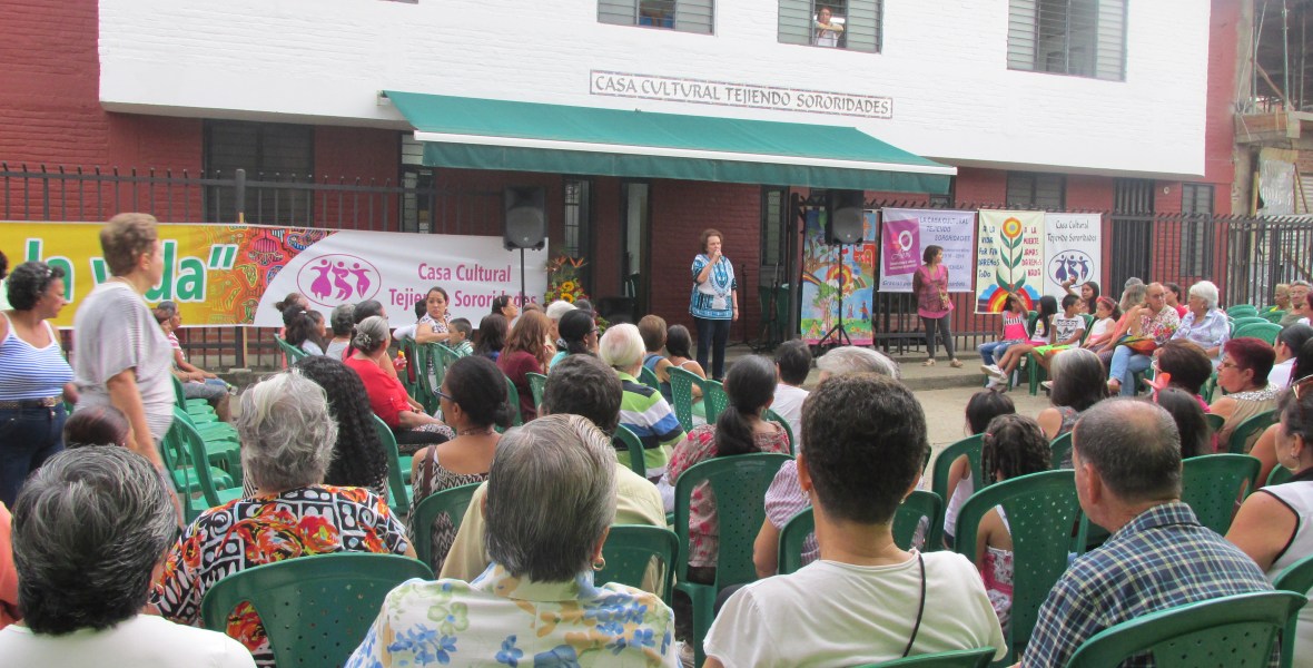 La Casa Cultural Tejiendo Sororidades desarrolló una serie de encuentros y talleres con mujeres, sobre la vivencia en sus barrios de la comuna 18 de Cali. Con estos textos queremos hacer una invitación a tomar conciencia permanente de cómo habitamos el barrio, de sus cambios y posibilidades de construir una mejor ciudadanía en el día a día del vecindario. El resultado se recogió en la cartilla «Nosotras en el barrio»